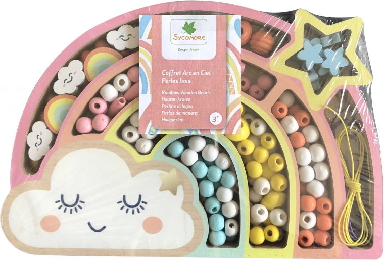 Alles is verpakt in een aantrekkelijke doos in de vorm van een regenboog, ideaal voor kinderen vanaf drie jaar. De afmetingen van de verpakking zijn 15 x 22,5 x 2 cm, wat gemakkelijk opbergen en meenemen mogelijk maakt.