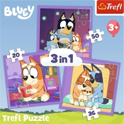 Ontdek de magie van puzzelen met TREFL Maak kennis met Bluey 3-in-1. Deze set biedt:
