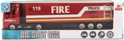 Deze gedetailleerde vrachtwagen met oplegger combineert een metalen cabine met lichte kunststof onderdelen voor zowel gemakkelijke handling als speelbestendigheid. Dankzij het freewheel-mechanisme rijdt hij soepel op vlakke ondergronden en past hij perfect in elke verzameling autootjes.