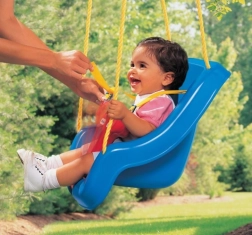 De schommelstoel bevat speciale veiligheidsvoorzieningen die kinderen een rustige en zorgeloze tijd garanderen. Het ontwerp met een voetsteun en een stabiele constructie met twee touwen maakt het een van de veiligste opties op de markt. De hoge rugleuning beschermt kinderen tegen achterover leunen, terwijl de voorste beugel uitvallen voorkomt. De meegeleverde riem met gesp biedt maximale veiligheid, en de mogelijkheid om de voorste beugel en de riem te verwijderen is ideaal voor oudere kinderen. De set bevat ook gele touwen om de schommel op te hangen.