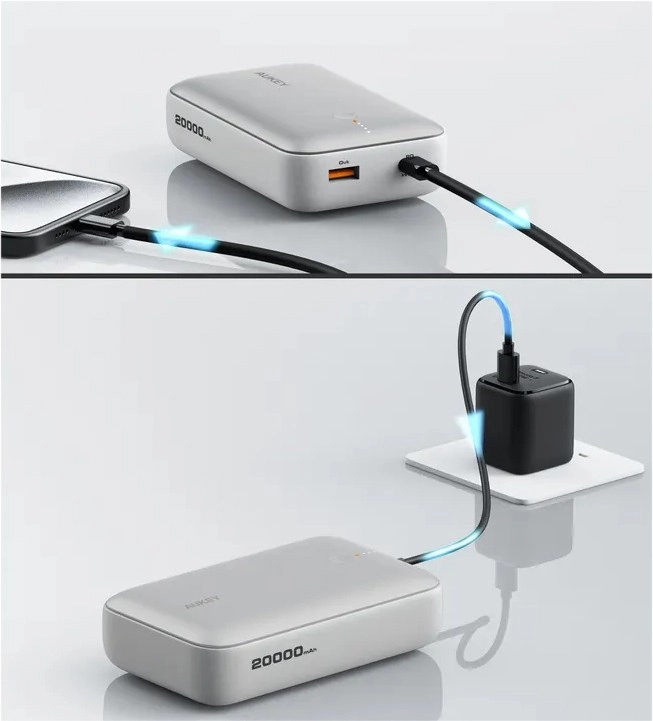 De Aukey Spark Mini powerbank is ontworpen om hoge prestaties te leveren in een compact formaat. Met een capaciteit van 20000 mAh ondersteunt hij het meervoudig opladen van de meeste smartphones en tablets, waardoor hij ideaal is voor lange reizen.