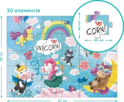 Geniet van het leggen van een puzzel met magische eenhoorns en ga op een fantasierijk avontuur. De set bevat 30 stukjes die samen een afbeelding van ca. 27 x 20 cm vormen.