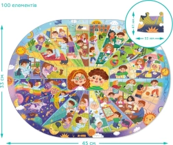 Kwalitatieve puzzel met 100 stukjes, die uw dagelijkse routines weergeeft, ideaal voor alle leeftijdscategorieën. Geniet van plezier en ontspanning met deze educatieve en vermakelijke puzzel.