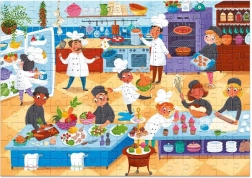Beleef een avontuur in de keuken met deze unieke puzzel van 150 stukken! Tijdens het puzzelen worden kinderen koks en oefenen ze niet alleen hun creativiteit, maar ook hun fijne motoriek. De voltooide puzzelplaat heeft afmetingen van ongeveer 47 x 33 cm en is daarom ideaal om in te lijsten en tentoon te stellen in de kinderkamer.< /p>