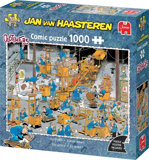 JUMBO-puzzel genaamd Oldtimers van auteur Jan Van Haasteren garandeert leuke en kleurrijke puzzelervaringen vol verborgen details en grappige situaties.