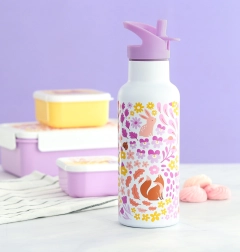 Deze praktische roestvrijstalen fles met een inhoud van 500 ml en een bloementuinmotief is perfect voor kinderen naar de kleuterschool of voor uitstapjes. Houdt drankjes lang koud of warm dankzij de dubbelwandige constructie, en is uitgerust met een tuit en rietje voor gemakkelijk drinken.