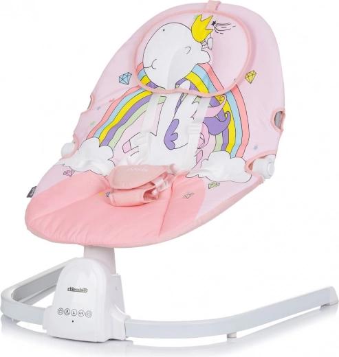 Babywipstoel Oasis Roze van Chipolino voor kinderen tot 6 maanden. Comfort, veiligheid en plezier in één. Werkt op adapter of batterijen.