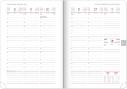 Bevat een weekindeling met een Tsjechisch-Slowaaks kalendarium en aanvullende talen Engels, Duits, Hongaars en Russisch.