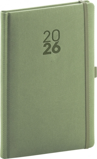 Elegante weekagenda Diamante 2026 in olijfkleur met een fijne structuur die doet denken aan een diamantslijpsel, ideaal voor zowel persoonlijke als zakelijke planning.