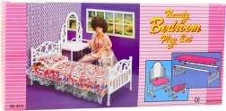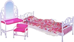 De meubelset voor poppen biedt veel speelmogelijkheden – het kind kan de poppen in bed leggen, de ochtendverzorging uitvoeren of de pop klaarmaken voor een bal. Spelen met het meubilair ontwikkelt verbeeldingskracht, creativiteit en fijne motoriek en leert het kind zorgen voor orde en ruimte. Het meubilair is licht en gemaakt van duurzaam en veilig plastic. Geschikt voor de meeste poppen van het type Barbie en vergelijkbaar (ca. 29 cm hoog).
