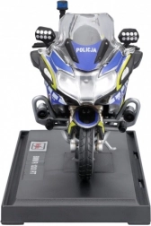 Dit metalen model motorfiets van de Poolse politie is nauwkeurig vervaardigd in de schaal 1:18 met grote zorg voor details en bewegende ophanging. Het model kan zonder basis staan dankzij de uitschuifbare steunpoot.
