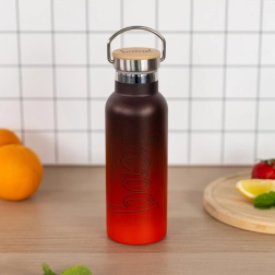 BAAGL Thermosfles met bamboe dop Gradient rood-zwart