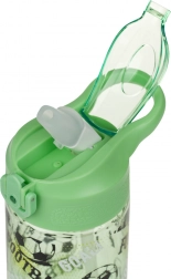 De fles heeft ook een handig handvat voor een makkelijke grip, wat vooral door kinderen gewaardeerd wordt. De fles is licht en gemaakt van gezondheidsvriendelijke tritan, wat veiligheid bij contact met voedsel garandeert.