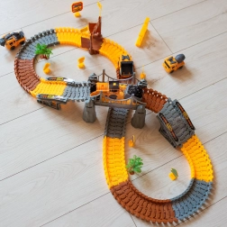 Deze grote constructieset combineert de wereld van treinen en racebanen in één leuke set. Dankzij de elastische, in elkaar klikbare onderdelen maakt je kind eenvoudig rechte stukken, bochten, opritten en brugsegmenten. Voor een realistische sfeer zorgen de bouwmachines, poorten, borden en andere decoraties die de verbeelding en zelfstandig spel prikkelen.