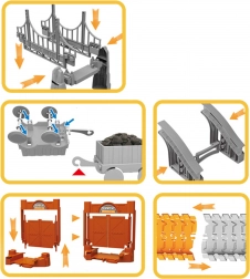 De set omvat een aangedreven locomotief voor het vervoeren van “lading”, kleine voertuigen voor het werk op de bouwplaats en een rijk assortiment accessoires. Monteren is intuïtief en stevig, zodat kinderen de baan steeds opnieuw kunnen ombouwen en nieuwe varianten kunnen uitproberen. Batterijen zijn inbegrepen, dus het spel kan meteen beginnen.