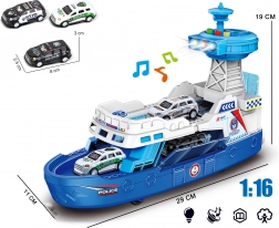 interactieve politiepatrouilleboot 1:16 + 3 metalen autootjes – Woopie