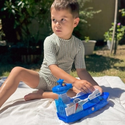 Geef de boot een zetje en hij rijdt vooruit dankzij het frictiemechanisme. Ideaal voor spel op tapijt of vloer. De boot drijft niet.