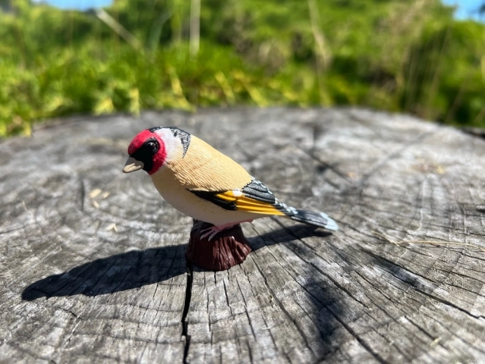 Elk figuur is zorgvuldig met de hand geschilderd om de kleuring en kenmerken van de putter natuurgetrouw weer te geven.