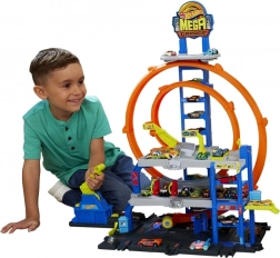 De Hot Wheels City maxi-garage brengt dynamisch spel op drie niveaus – van de wasstraat op de begane grond via de handlift tot de start vanaf de bovenste verdieping. De lanceerder stuurt auto’s de dubbele looping in; schakelaars bepalen vervolgens op welke verdieping de auto aankomt. Geweldig voor solo- en samen spelen.