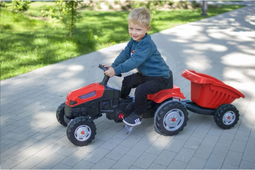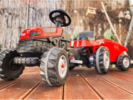 De traptractor Farmer GoTrac MAXI met aanhanger is het ideale cadeau voor elk kind. Voorzien van een gepatenteerd stuursysteem dat het rijden ook voor de jongste gebruikers vergemakkelijkt.