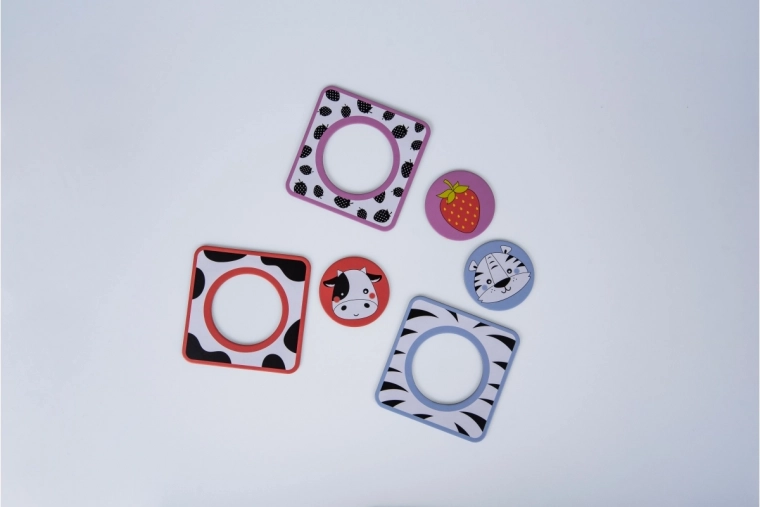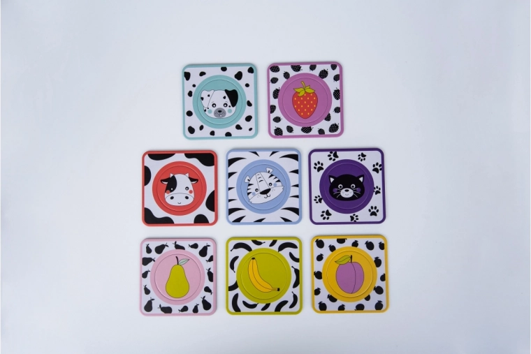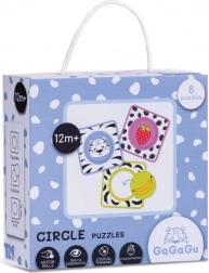Ontdek spelenderwijs leren met de Gagagu-puzzel. Ronde schijfjes met kleurrijke illustraties van fruit en schattige dierengezichtjes prikkelen de nieuwsgierigheid, vergroten de woordenschat en versterken de oog-handcoördinatie. Duurzame materialen zorgen voor veilig en langdurig gebruik.