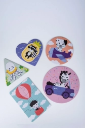 Schattige illustraties van een pinguïn, panda, aapje en andere dieren stimuleren kinderen om steeds opnieuw te puzzelen en hun fijne motoriek te trainen.
