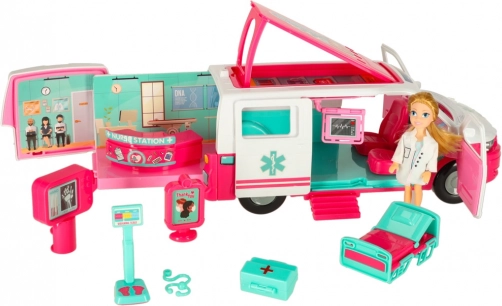 Mobiele polikliniek voor kinderen combineert plezier en leren in één opklapbaar voertuig. Deze interactieve set bevat een dokterspop en diverse medische instrumenten, wat uitnodigt tot fantasierijk spel.