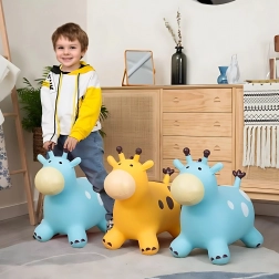 De giraffe is gemaakt van veilige en duurzame materialen, ontworpen om stabiliteit en comfort te bieden. Dit moedigt actieve beweging aan en zorgt voor uren springplezier, zowel binnen als buiten.