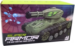 De set bevat alles wat je nodig hebt voor direct gebruik - tank, afstandsbediening (batterijen voor de afstandsbediening niet inbegrepen), USB-oplaadkabel en kogeltjes voor de effecten. Speelgoed geschikt voor kinderen vanaf 8 jaar.