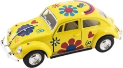 Reis terug naar de gouden tijd van de weg met het gedetailleerde model KINSMART VOLKSWAGEN Beetle. Dit metalen model van 13 cm valt op door de hoogwaardige afwerking, kleurrijke bloemmotieven en realistische details die zowel kinderen als volwassen verzamelaars zullen waarderen.