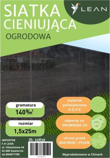 Grijs schaduwdoek met afmetingen 1,5 x 25 m is de ideale oplossing voor privacy, bescherming tegen de zon en comfort in de tuin of op het balkon dankzij de hoge schaduwgraad van 90%.