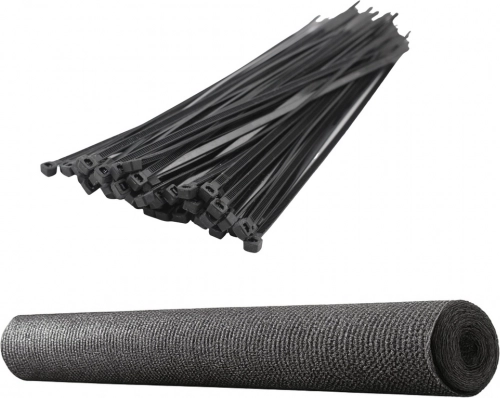 Het doek is ook zeer gebruiksvriendelijk dankzij de praktische oprolling op een stevige kartonnen rol, wat het uitrollen en installeren vergemakkelijkt. De verpakking bevat 60 kabelbinders, waarmee het doek snel en stabiel op het gekozen oppervlak kan worden bevestigd.