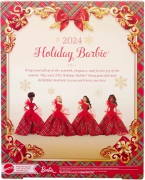 De feestelijke Barbie 2024 draagt een indrukwekkende felrode corset jurk met één schouder, prachtig gecombineerd met een volumineuze baljurk in klassiek ruitjespatroon. Grote tule accenten geven de klassieke stijl een moderne twist, terwijl opvallende oorbellen de totale elegantie benadrukken. De pop is verpakt in een doos die ideaal is om te presenteren, wat haar tot een geweldig cadeau maakt voor verzamelaars of als een uniek onderdeel van feestelijke decoraties.