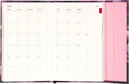 Bevat ook maandoverzichten, ideaal voor het plannen van vakanties of vrije dagen. De agenda is niet alleen praktisch, maar met het ontwerp met paarse bloemen ook een stijlvolle toevoeging aan je bureau.