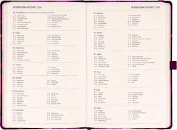 • De helft met een veertiendaags horizontaal calendarium bevat ook internationale feestdagen.