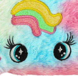 De cosmetische etui heeft een schattig ontwerp met een regenboogpatroon en unieke oortjes, wat het een geweldig esthetisch accessoire maakt voor elke kleine prinses.