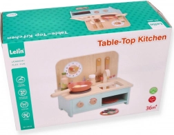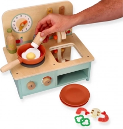 Deze compacte houten keuken biedt kinderen de mogelijkheid om aan rollenspelactiviteiten deel te nemen en hun vaardigheden te ontwikkelen. Ze is speciaal ontworpen voor kinderen vanaf 3 jaar, waardoor ze ideaal is voor kleuters. De keuken is uitgerust met realistische details zoals draaiknoppen en een klok.