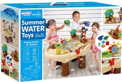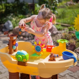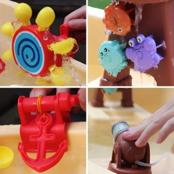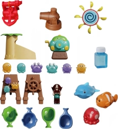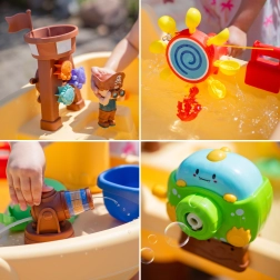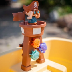 De set bevat een piratentoren met kraaiennest, een piratenfiguurtje, een anker, gietbekers en drijvende diertjes, die zintuiglijk spel, oog-handcoördinatie en creativiteit stimuleren. De grote speelruimte maakt comfortabel samenspelen met meerdere kinderen mogelijk en de eenvoudige constructie vergemakkelijkt het legen en het onderhoud.