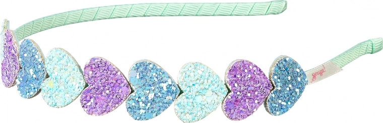 Stijlvolle haarband voor kleine dames, versierd met glinsterende hartjes in blauwtinten. De ideale accessoire voor alledaagse kapsels en feestelijke gelegenheden.