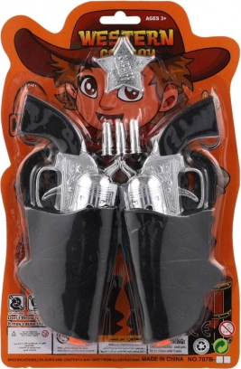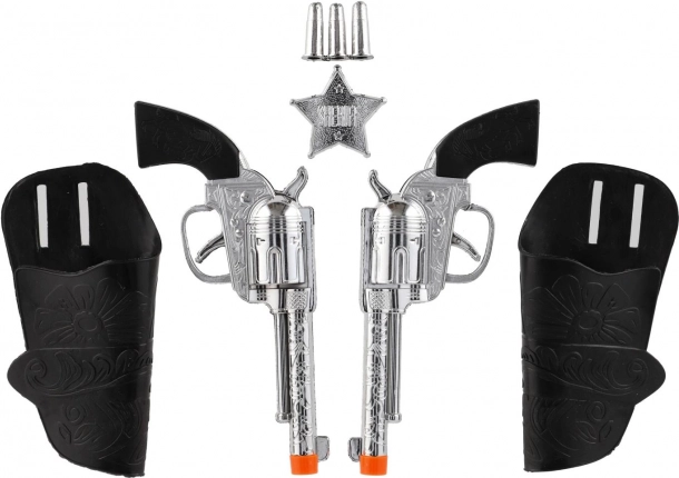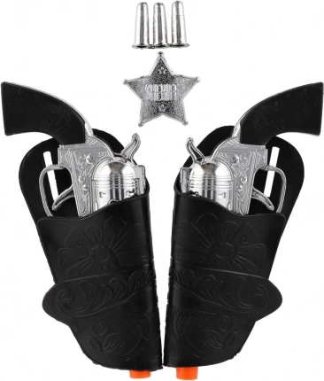 De cowboyset met twee plastic pistolen en een holster verandert elk kind in een echte sheriff van het Wilde Westen. Maakt avontuurlijke, actievolle spellen mogelijk met nadruk op realistische details en creatieve verbeelding.
