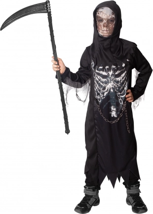Het kinder carnavalskostuum Doodshoofd is ontworpen voor kinderen van 6-8 jaar met een lengte van 117-128 cm. Dit kostuum bevat: