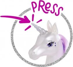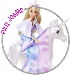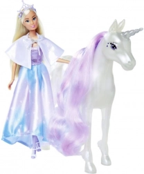 Geniet van prachtige ervaringen met de pop Steffi in betoverende prinsessenjurken en haar charmante glanzende eenhoorn, die een lange manen heeft die perfect is om te kammen.