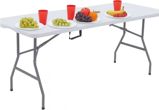 Praktische en duurzame opvouwbare tafel is ideaal voor evenementen, familiebijeenkomsten en gebruik in huis en tuin. Het vouwen tot de helft en het geïntegreerde handvat maken vervoer eenvoudig.