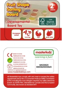 De Vormensorteerder Gekleurd Fruit van Masterkidz is een geweldig houten speelgoed met veel doeleinden. Het zorgt niet alleen voor plezier, maar maakt het ook mogelijk om fruitnamen te leren en de fruitconsumptie te stimuleren. Het kind moet de afzonderlijke vruchten matchen met de bijbehorende openingen in de houten plaat, wat concentratie en vormanalyse vereist. Deze activiteit draagt tevens bij aan de ontwikkeling van coördinatievaardigheden.