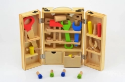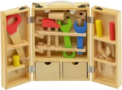 Houten gereedschap voor kinderen in een praktische koffer! Geweldige set voor kleine klussers, dat de motoriek en creativiteit ontwikkelt.