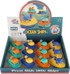 Start het plezier met één druk! Het “druk en rij”-bootje rijdt na het indrukken van de schoorsteen vanzelf weg dankzij het ingebouwde vliegwiel. Dankzij de compacte afmetingen past het in een kleine hand en kunnen kinderen het gemakkelijk besturen.