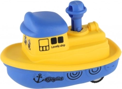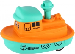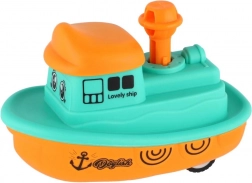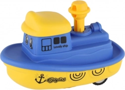 Druk op de schoorsteen en het bootje rijdt dankzij het vliegwiel soepel weg. Geweldig interactief speelplezier zonder batterijen.