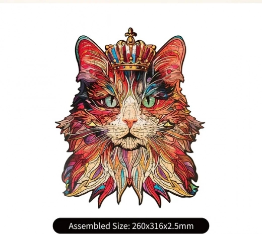 Stap binnen in de wereld van artistiek puzzelen met de houten puzzel Kattenkoning. Elk stukje is zorgvuldig laser-gesneden, wat perfecte precisie en eenvoudig leggen garandeert. Dankzij het hoogwaardige hout kun je keer op keer van dit juweeltje genieten. De puzzel ontwikkelt je fijne motoriek en biedt plezier voor het hele gezin.