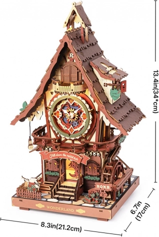 Ontdek de mystiek en schoonheid van het bos met een koekoeksklok die tot leven komt elk heel uur. Hij combineert een nauwkeurig quartzmechanisme met interactieve elementen zoals een slinger en kaartmotiefdetails. Deze mechanische puzzel stimuleert de fijne motoriek en biedt leerzaam en creatief plezier.