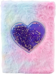 Geniet van de prachtige kleuren en het zachte pluchen materiaal waarmee de kaft van het notitieboek is bedekt. Het belangrijkste kenmerk is een transparante hartvormige zak met glitters die vrij zweven en een unieke interactieve decoratie toevoegen.<>